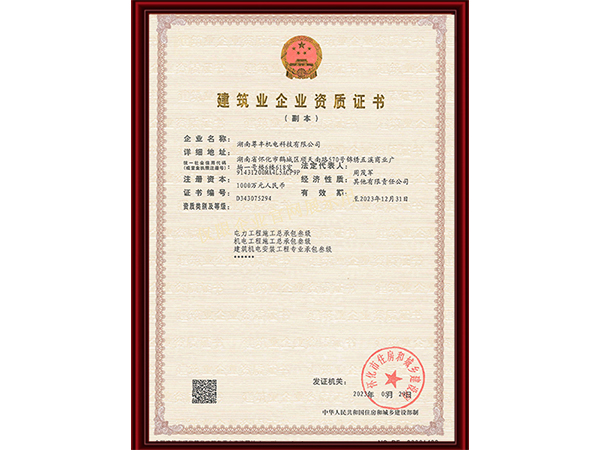 截止目前,尊豐科技已擁有“消防設施工程專業承包壹級資質”有效期致2026年4月8日,“建筑裝修裝飾工程專業承包壹級資質”有效期致2026年4月8日,“建筑機電安裝工程專業承包貳級資質”有效期致2026年4月8日,“機電工程施工總承包叁級資質”有效期致2023年12月31日、“電力施工總承包叁級資質”有效期致2023年12月31日、“建筑機電安裝工程專業承包叁級”有效期致2023年12月31日,等多項資質證書(詳見榮譽資質)